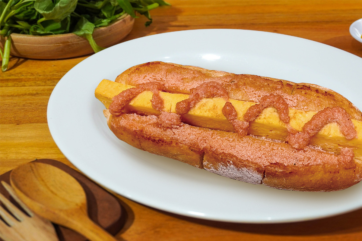 だし巻きたまごの優しい甘み、やわらかなだしの香りと、めんたいフランスの香ばしく旨みたっぷりのマイルドな味わいが絶妙にマッチ。